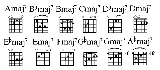 There are literally thousands of chords as there are many chord types, inversions and voicings. The following 100 common chords are the major, minor, major 7, dominant 7, minor 7th and suspended 4th chords in all 12 keys including many barre chords. The final four chords have alternative bass notes completing the hundred.