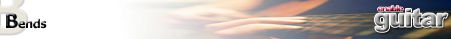 A bend is when you change the pitch of a note by moving the string up and down. The bass strings are normally bent towards the ground and the treble strings away from the ground to stop the strings moving off the neck. A bend can raise the pitch of a note and return it to the original pitch or just bend it up without releasing it. Bending a note before you play it creates a note which can be bent down to a lower pitch. Bends are often used together with a pivot note to create contrast. A unison bend is when the B string is bent to the same pitch as another note on the E string to thicken up the sound. The B and G strings have different tensions so when you bend them together the B string is raised a semi-tone and the G string is raised by a whole tone. Chords can also be bent by moving each string involved in the chord. |